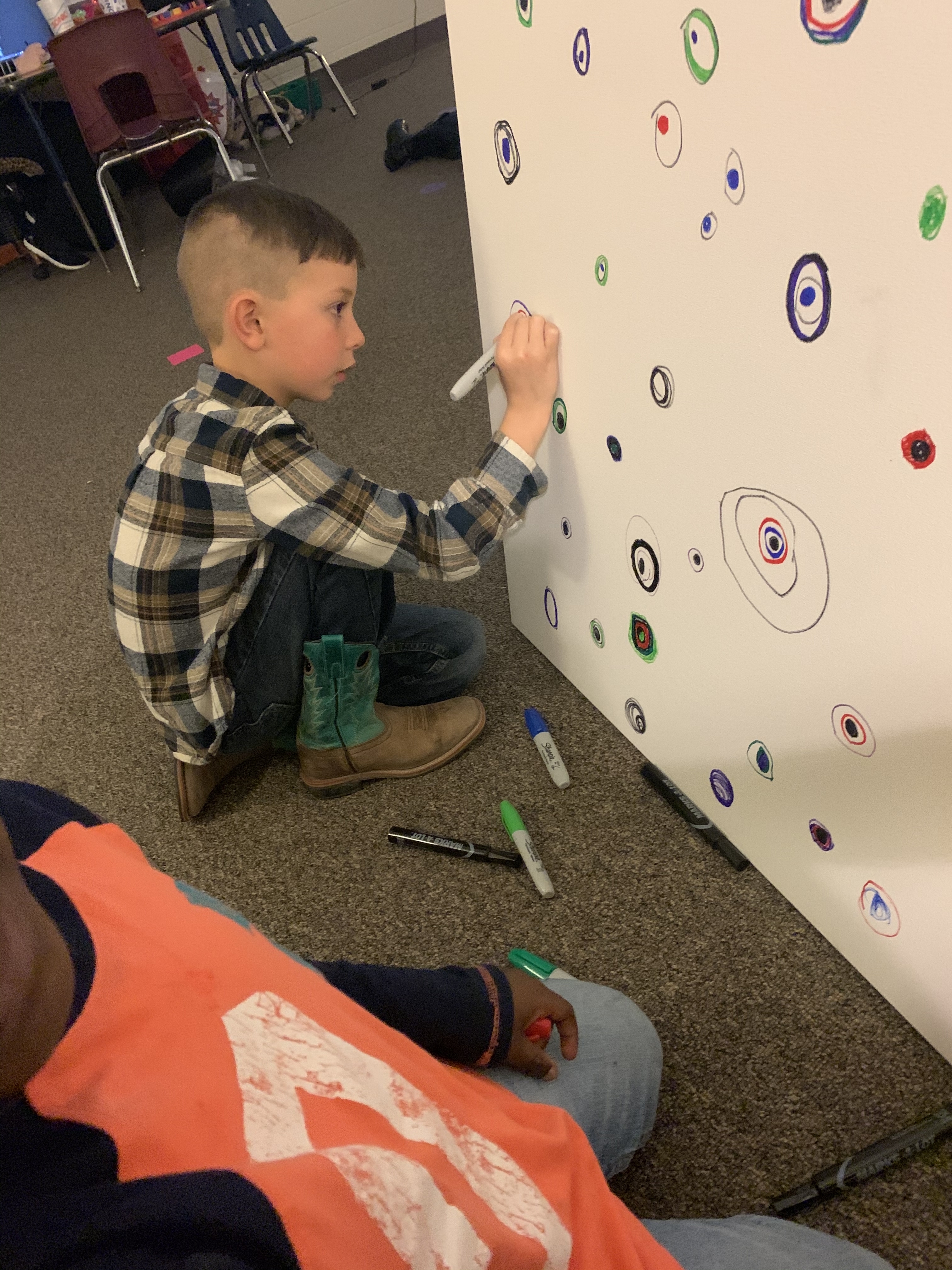 1st and 2nd grade have been working hard on a collaborative art piece with Mrs. Graham! Stay tuned for the final product!